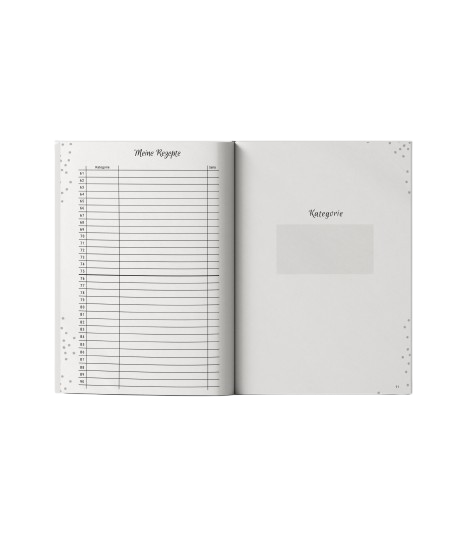 🔸Platz für bis zu 120 Rezeptideen 🔸8 Kategorien (von Snacks bis Frühstück, Nachspeise oder deine eigene Kategorie z.B. spezielle Familienrezepte) 🔸Sternebwertung & Schwierigkeitsgrad